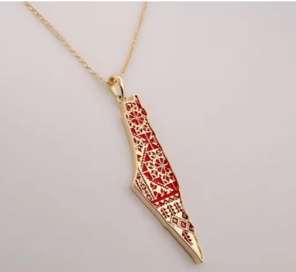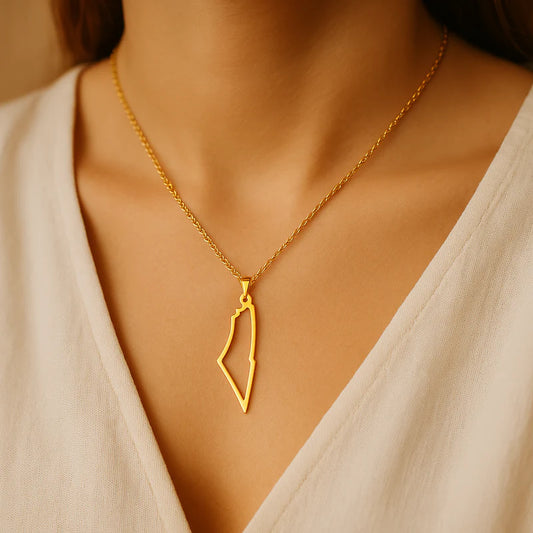 Collier doré carte de la Palestine avec Motifs Traditionnels