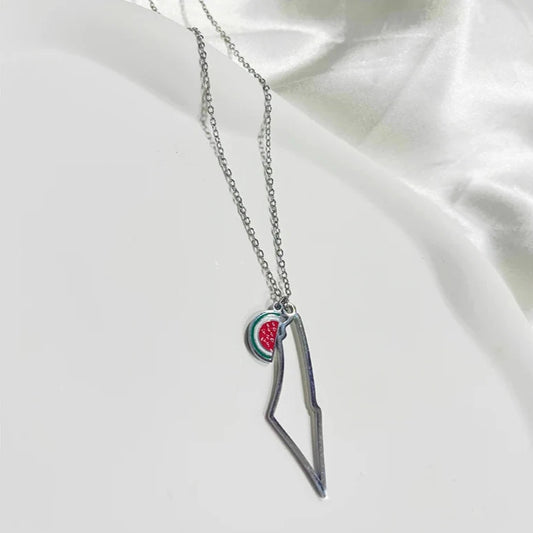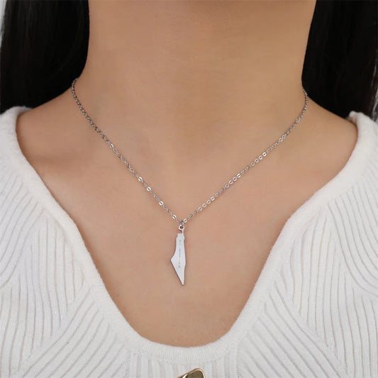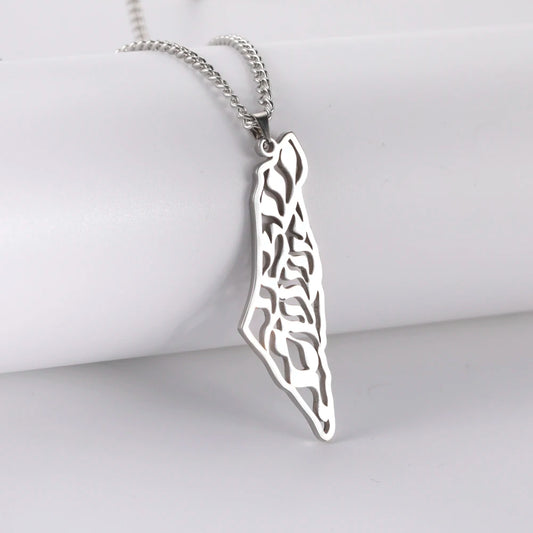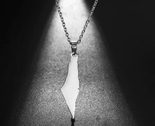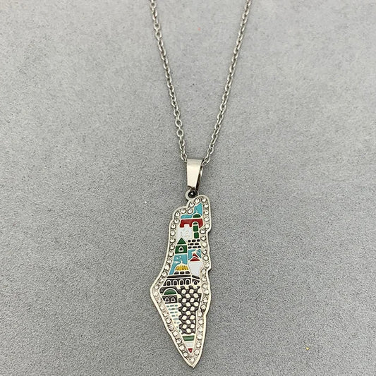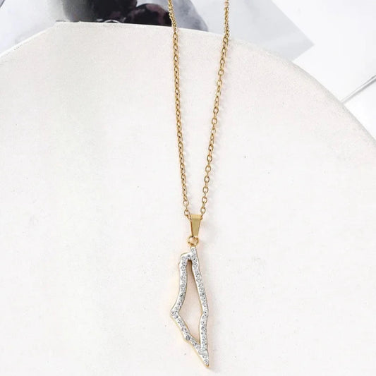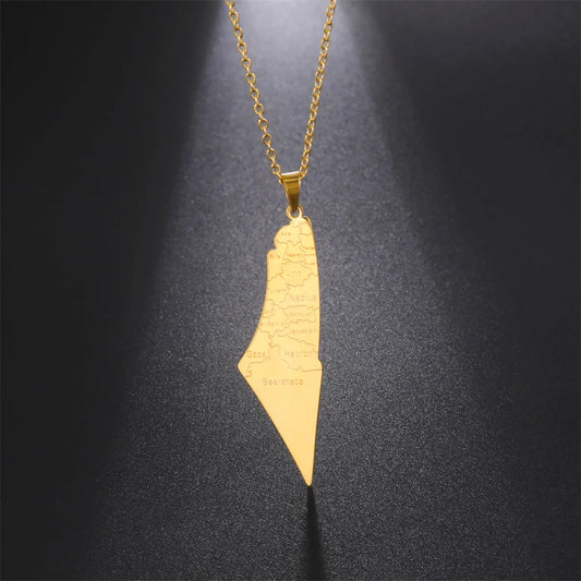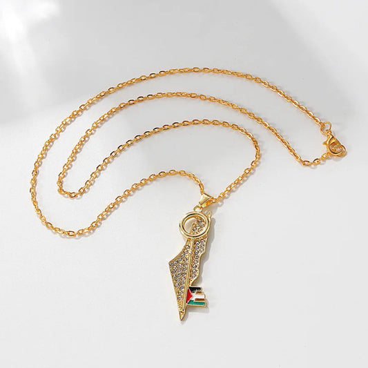 Collier doré carte de la Palestine sertie de pierres scintillantes