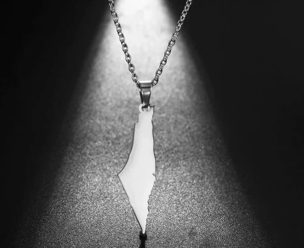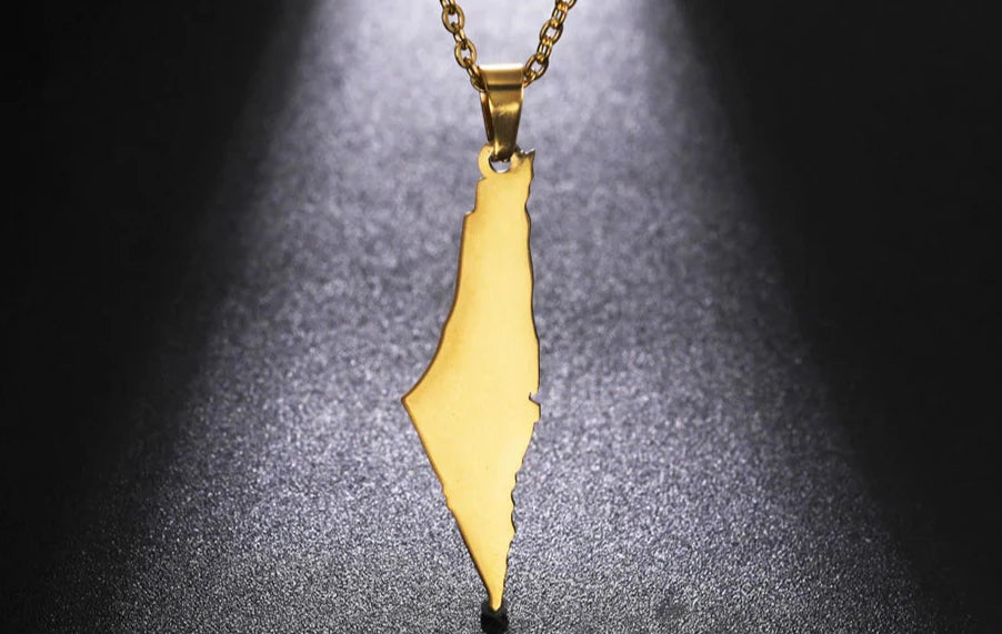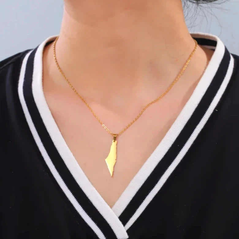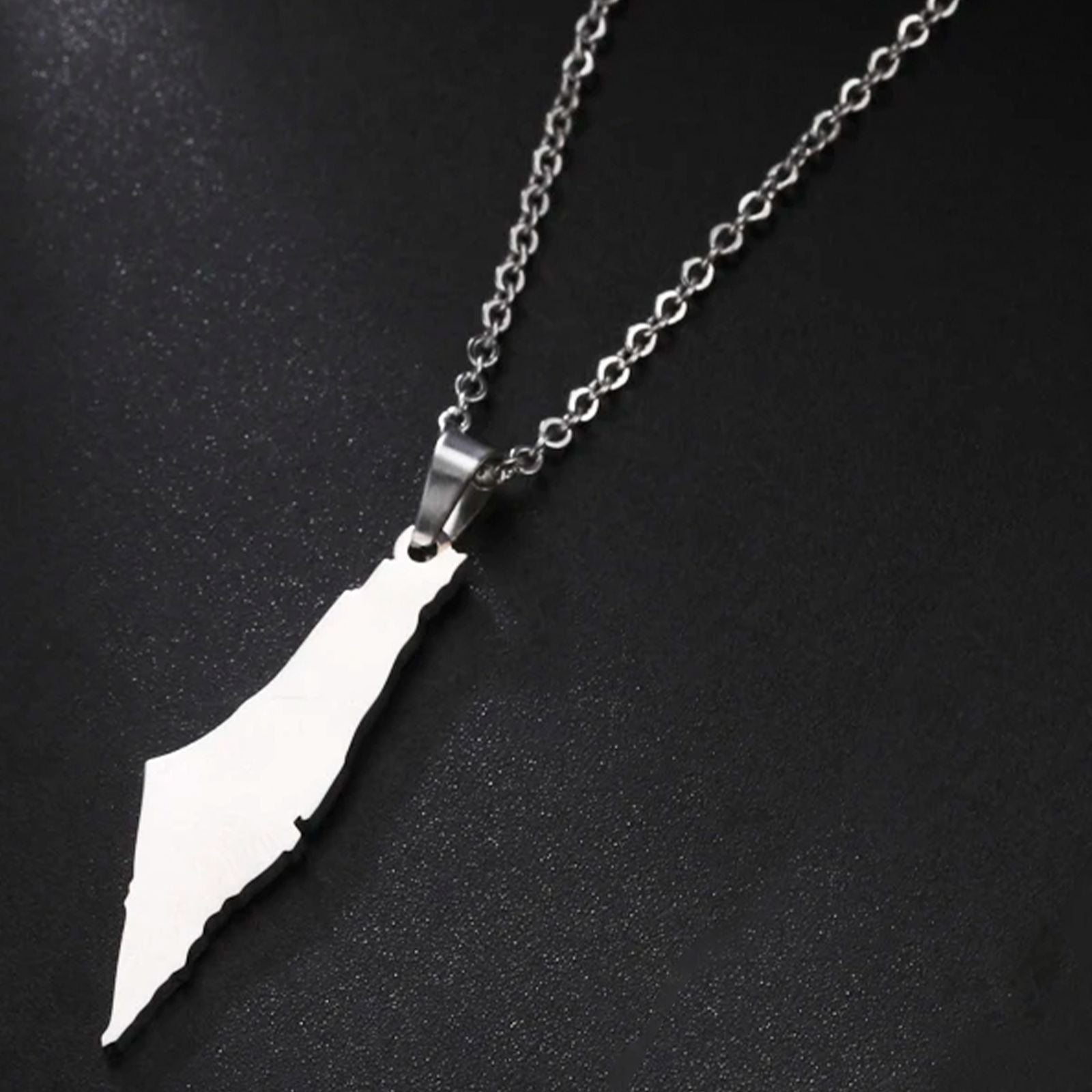 Ce collier en acier inoxydable affiche fièrement le drapeau palestinien et la carte du pays, un symbole élégant de votre soutien à cette cause.