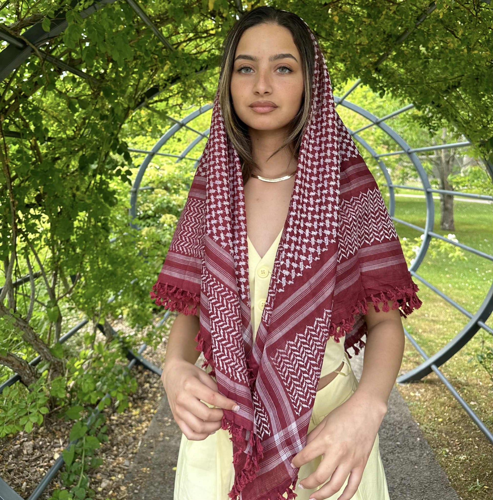 Apportez une touche de caractère à votre style avec cette magnifique keffiyeh rouge bordeaux, un accessoire à la fois tendance et porteur d’histoire.